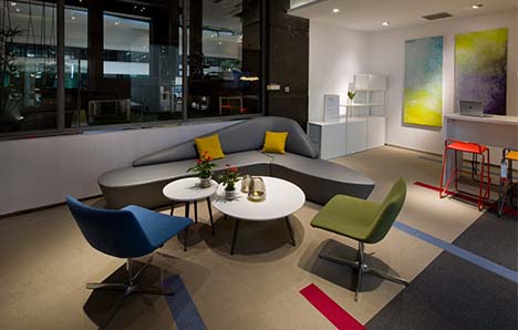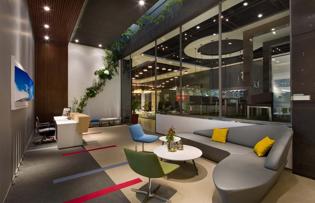 接待區(qū)域模糊辦公場所與接待環(huán)境之間的界線,營造出溫暖和親切的氛圍。同時(shí),前臺接待區(qū)域還需以嶄新的、充滿活力的方式反映企業(yè)品牌形象,使其在市場中脫穎而出。
